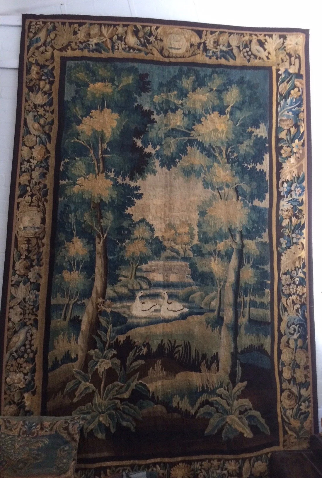 View fullsize French Verdure Tapestry featuring Swans with original border c1700 Size 264cm x 178cm POA